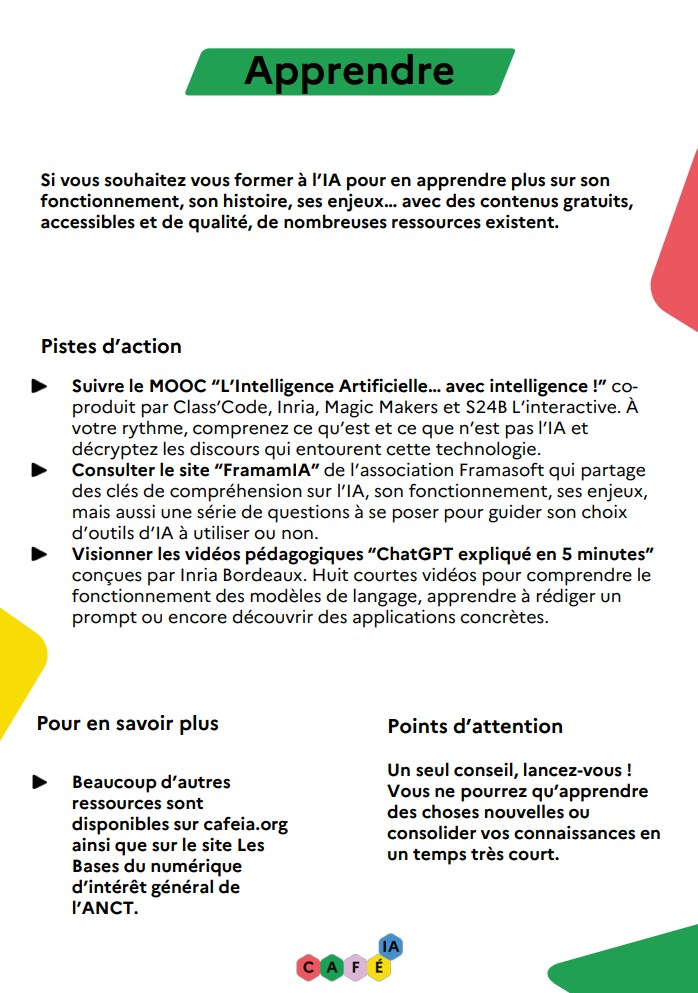 Beaucoup d’autres ressources sont disponibles sur https://cafeia.org ainsi que sur le site Les Bases du numérique d’intérêt général de l’ANCT.